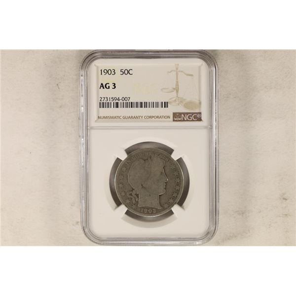 1903 SILVER BARBER HALF DOLLAR NGC AG3165 - 1903 SILVER BARBER HALF DOLLAR NGC AG3