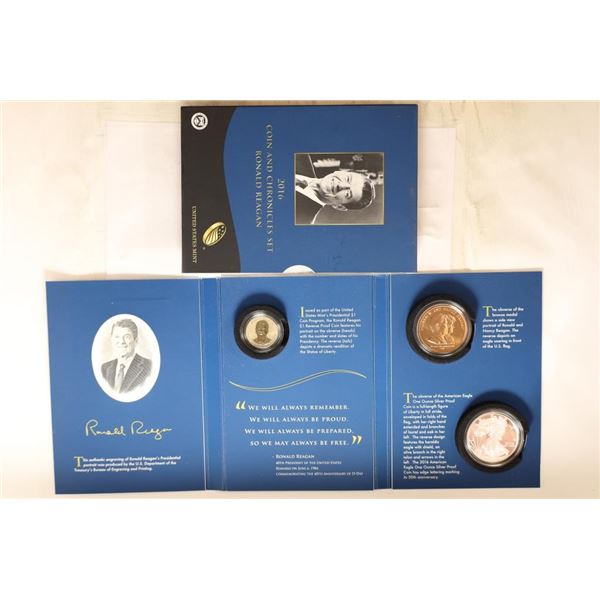 CONTAINS: 2016-S PRESIDENTIAL REVERSE PROOF $1 COIN, 2016-W PROOF AMERICAN SILVER EAGLE & 1 1/2" RONALD AND NANCY REAGAN BRONZE MEDAL. O...