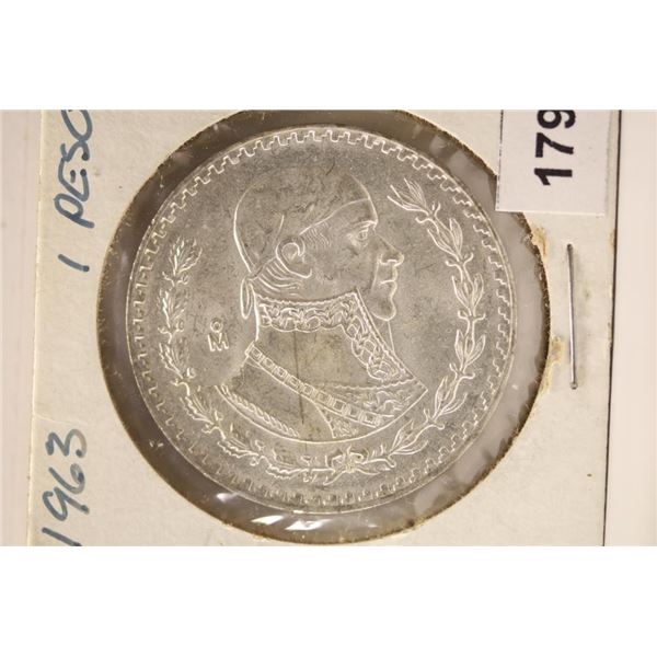 1963 MEXICO SILVER 1 PESO BU COIN .0514 OZ. ASW179 - 1963 MEXICO SILVER 1 PESO BU COIN .0514 OZ. ASW