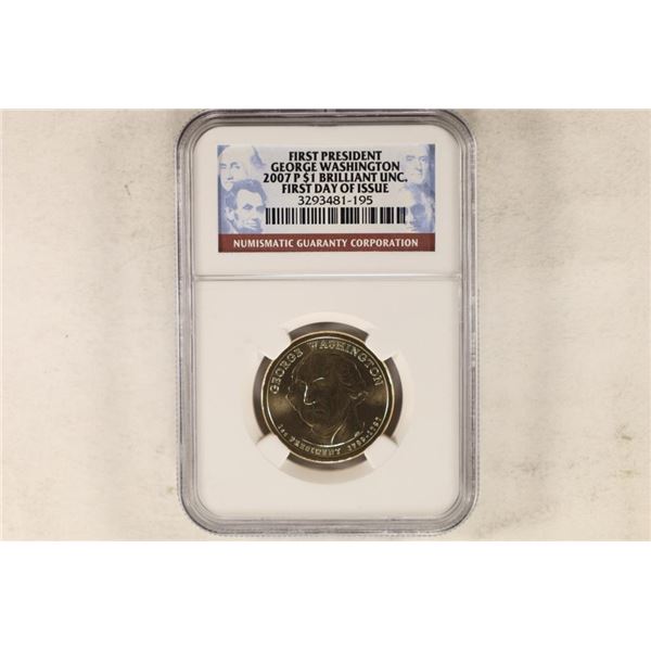 2007-P PRESIDENTIAL DOLLAR NGC BRILLIANT UNC185 - 2007-P PRESIDENTIAL DOLLAR NGC BRILLIANT UNC