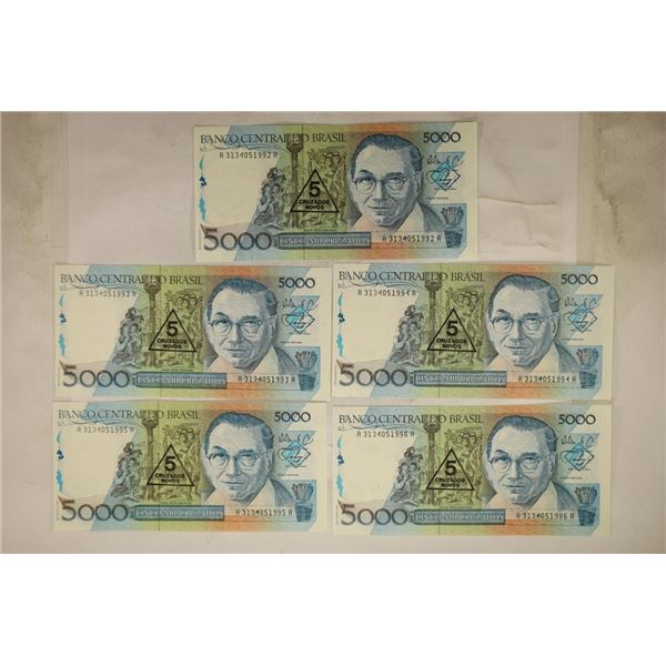 10-1989 BRASIL CRISP UNC 5000 CRUZADOS BILLS WITH187 - 10-1989 BRASIL CRISP UNC 5000 CRUZADOS BILLS WITH