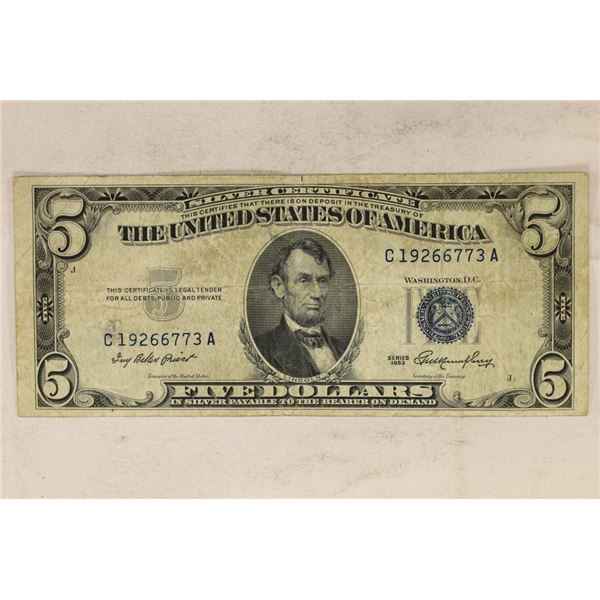 1953 U.S. $5 SILVER CERTIFICATE, BLUE SEAL.189 - 1953 U.S. $5 SILVER CERTIFICATE, BLUE SEAL.