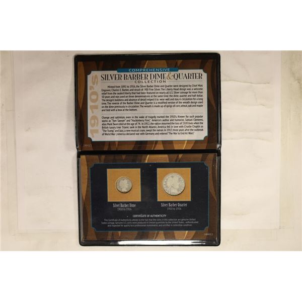 INCLUDES:1912 BARBER DIME & 1916 BARBER QUARTER IN NICE BLACK DISPLAY FOLIO WITH INFORMATIONAL CARD
