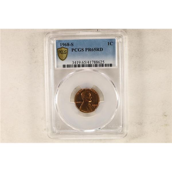 1968-S LINCOLN CENT PCGS PR65 RD GOLD SHIELD LABEL200 - 1968-S LINCOLN CENT PCGS PR65 RD GOLD SHIELD LABEL