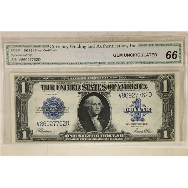 1923 US $1 LARGE SIZE SILVER CERTIFICATE CGA GEM256 - 1923 US $1 LARGE SIZE SILVER CERTIFICATE CGA GEM