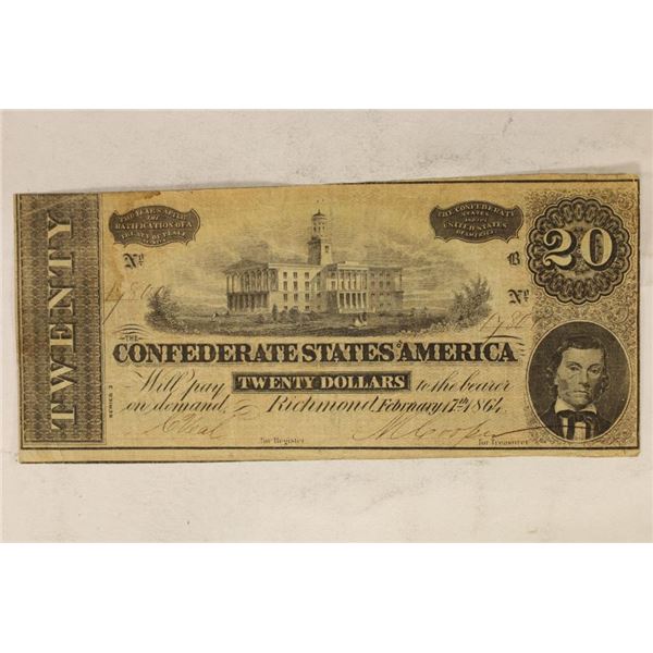 1864 CONFEDERATE STATES OF AMERICA $20 BILL267 - 1864 CONFEDERATE STATES OF AMERICA $20 BILL