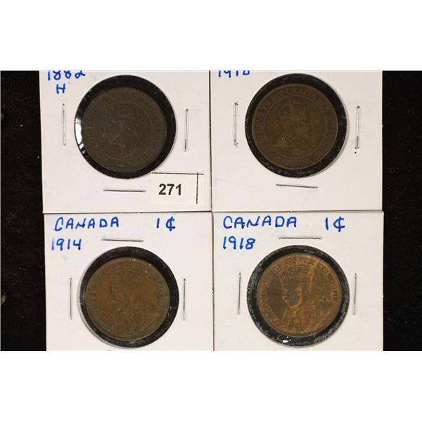1882-H, 1910, 1914 & 1918 CANADA 1 CENT COINS271 - 1882-H, 1910, 1914 & 1918 CANADA 1 CENT COINS