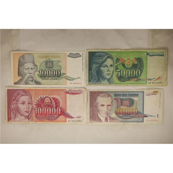 4 YUGOSLAVIAN BILLS.1993-10,000 DINARA,1988-50,000297 - 4 YUGOSLAVIAN BILLS.1993-10,000 DINARA,1988-50,000