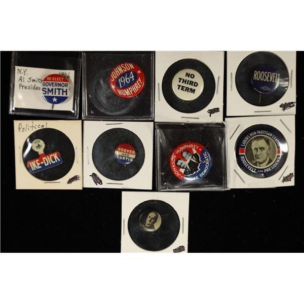 9 ASSORTED METAL POLITICAL CAMPAIGN BUTTONS.299 - 9 ASSORTED METAL POLITICAL CAMPAIGN BUTTONS.