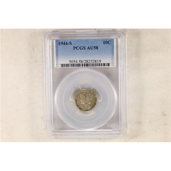 1944-S SILVER MERCURY DIME PCGS AU58105 - 1944-S SILVER MERCURY DIME PCGS AU58