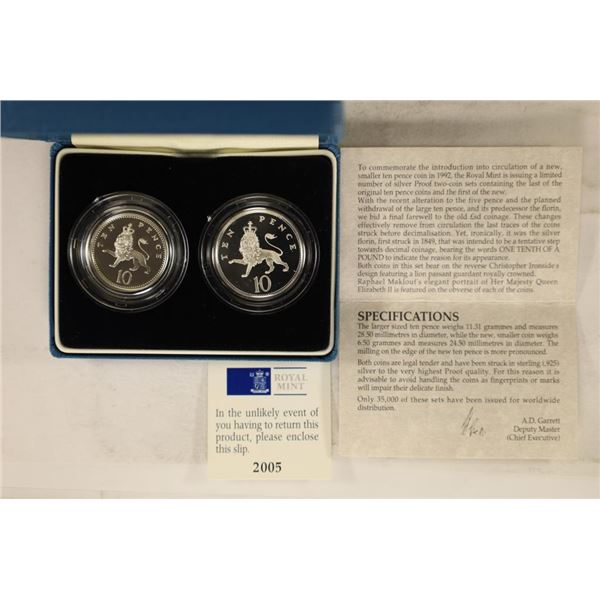 1992 UNITED KINGDOM 2 COIN SILVER PROOF TEN PENCE112 - 1992 UNITED KINGDOM 2 COIN SILVER PROOF TEN PENCE