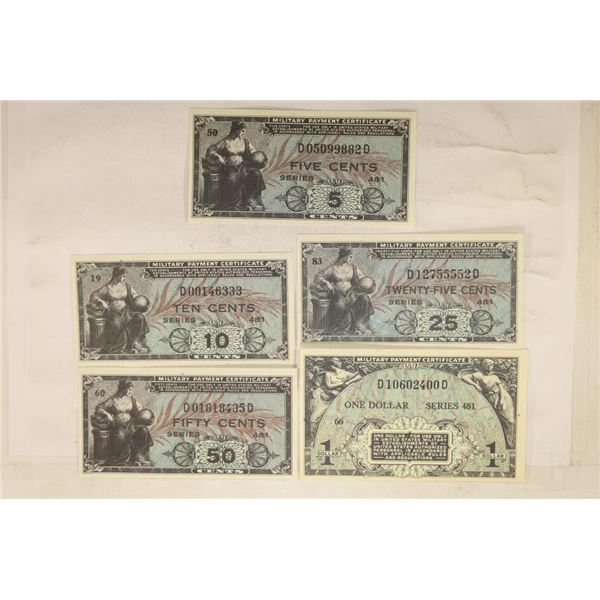 5 REPLICA SERIES 481 U.S. MILITARY PAYMENT CERTS.117 - 5 REPLICA SERIES 481 U.S. MILITARY PAYMENT CERTS.