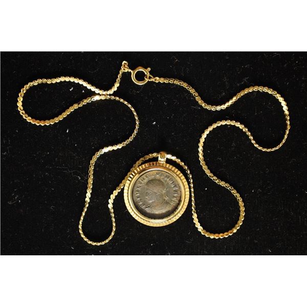 250-390 A.D. ANCIENT COIN IN GOLD FILLED NECKLACE118 - 250-390 A.D. ANCIENT COIN IN GOLD FILLED NECKLACE