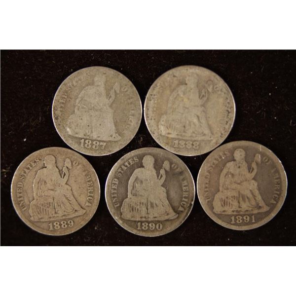 1887, 1888, 1889, 1890 & 1891 SEATED LIBERTY DIMES