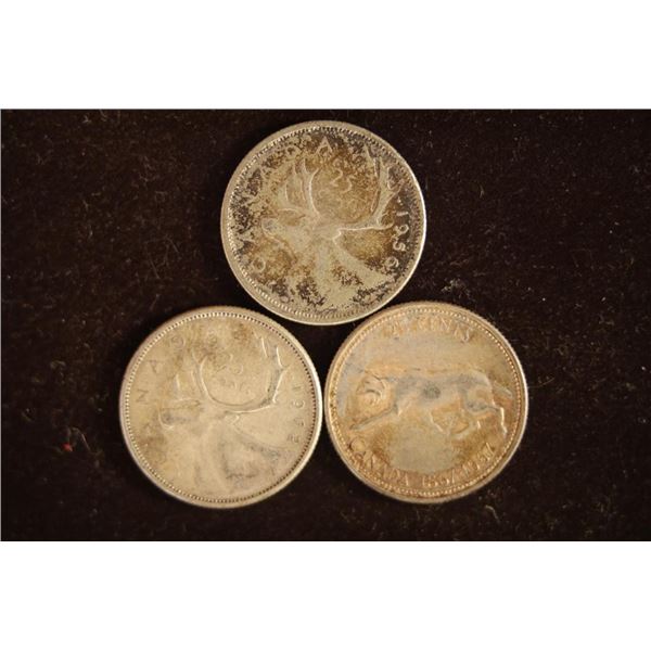 1956, 1962 & 1967 CANADA SILVER 25 CENTS