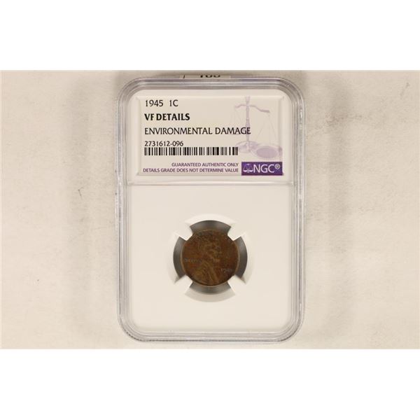 1945 LINCOLN CENT NGC VERY FINE DETAILS