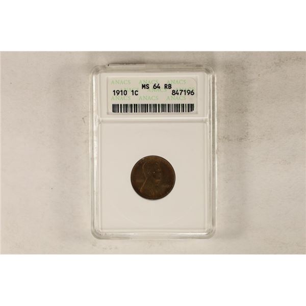 1910 LINCOLN WHEAT CENT ANACS MS64RB