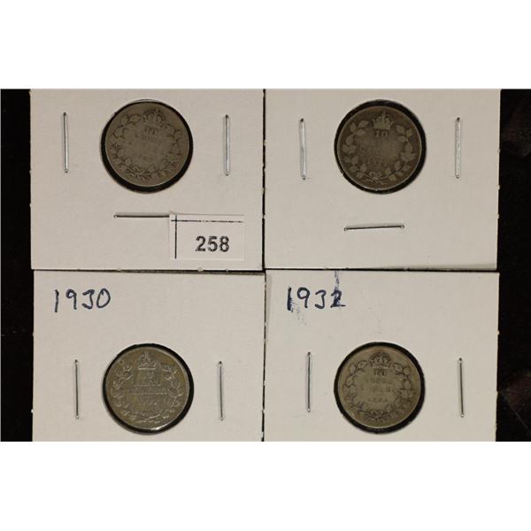 1928, 1929, 1930 & 1932 CANADA SILVER 10 CENTS