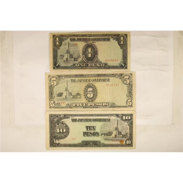 3 JAPANESE INVASION CURRENCY BILLS: 1 PESO,