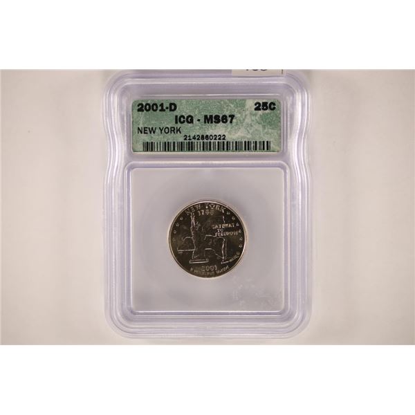 2001-D NEW YORK QUARTER ICG MS67103 - 2001-D NEW YORK QUARTER ICG MS67