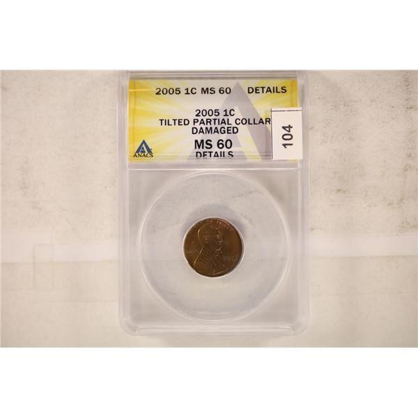 ERROR 2005 LINCOLN CENT TILTED PARTIAL COLLAR104 - ERROR 2005 LINCOLN CENT TILTED PARTIAL COLLAR