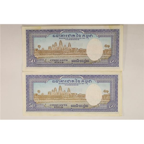 2-BANK OF CAMBODIA 50 RIELS CRISP UNC LIGHT STAINS105 - 2-BANK OF CAMBODIA 50 RIELS CRISP UNC LIGHT STAINS