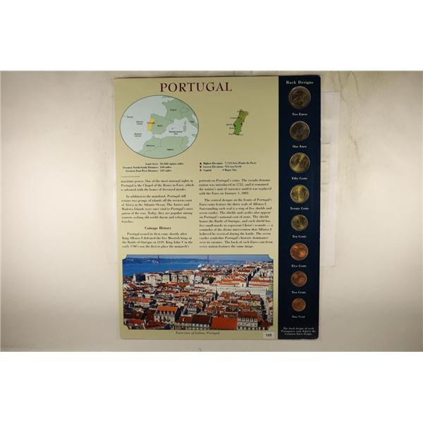 PORTUGAL 8 COIN UNC SET ON CARD WITH INFO109 - PORTUGAL 8 COIN UNC SET ON CARD WITH INFO