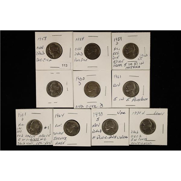 ERRORS 10 ASSORTED 1958-1971 JEFFERSON NICKELS113 - ERRORS 10 ASSORTED 1958-1971 JEFFERSON NICKELS