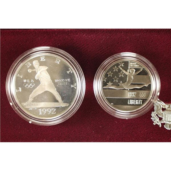 SILVER DOLLAR AND 1992-S HALF DOLLAR (GYMNASTICS), ORIGINAL US MINT PACKAGING WITH CERTIFICATE