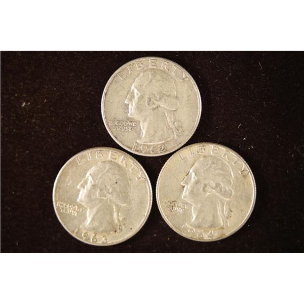 1962-D, 1963 & 1964 WASHINGTON SILVER QUARTERS133 - 1962-D, 1963 & 1964 WASHINGTON SILVER QUARTERS