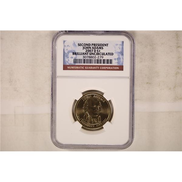 2007-D JOHN ADAMS PRESIDENTIAL DOLLAR NGC BU149 - 2007-D JOHN ADAMS PRESIDENTIAL DOLLAR NGC BU