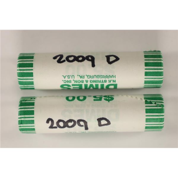 2-$5 SOLID DATE ROLLS OF 2009-D ROOSEVELT DIMES BU150 - 2-$5 SOLID DATE ROLLS OF 2009-D ROOSEVELT DIMES BU