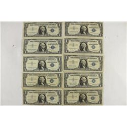 10 ASSORTED 1957 $1 SILVER CERTIFICATES