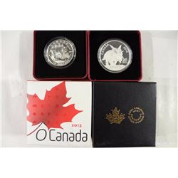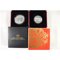 2013 $10 FINE SILVER COIN, THE WOLF AND 2014 $20 FINE SILVER COIN PROOF CANADIAN DINOSAURS: XENOCERATOPS, BOTH ORIGINAL ROYAL CANADIAN MINT PACKAGI
