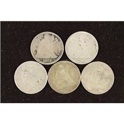 1870'S 5 ASSORTED SEATED LIBERTY DIMES