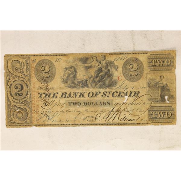 186? THE BANK OF ST. CLAIR $2 OBSOLETE BANK NOTE