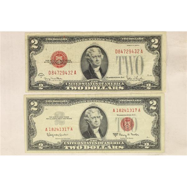 1928-G AND 1963-A $2 RED SEAL US NOTES
