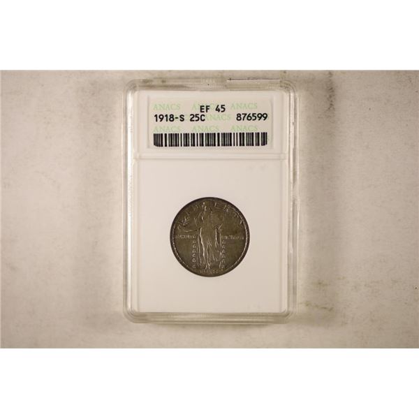 1918-S STANDING LIBERTY QUARTER ANACS EF45