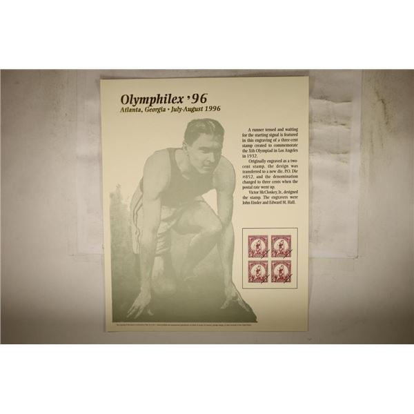 OLYMPHILEX '96 ATLANTA, GEORGIA SOUVENIR CARD