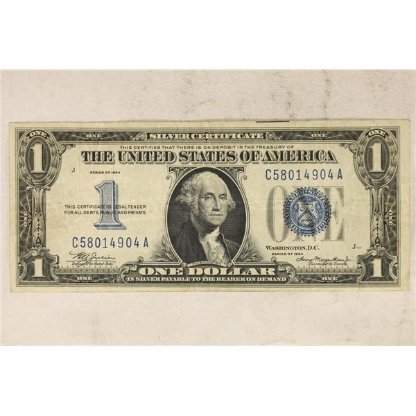 1934 $1 BLUE SEAL FUNNY BACK SILVER CERTIFICATE
