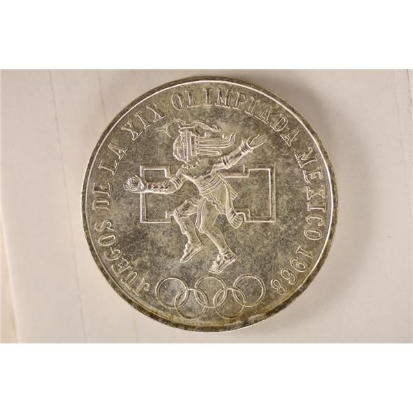 1968 MEXICO SILVER OLYMPIC 25 PESO, BRILLIANT UNC .5208 OZ. ASW