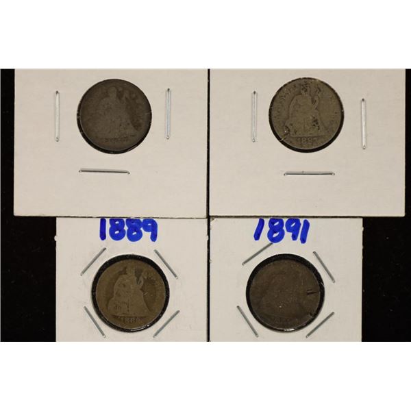 4 ASSORTED SILVER SEATED LIBERTY DIMES: 1853, 1887