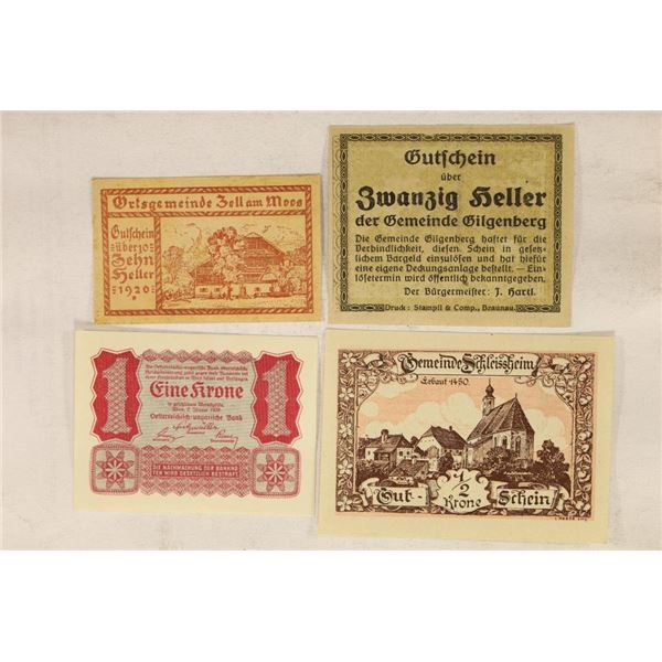 4-1920'S AUSTRIA BILLS: 1/2 KRONE, 1 KRONE, 10 AND