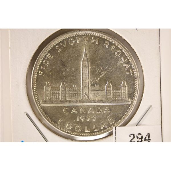 1939 CANADA SILVER $1 AU .6000 OZ. ASW SOME TONING