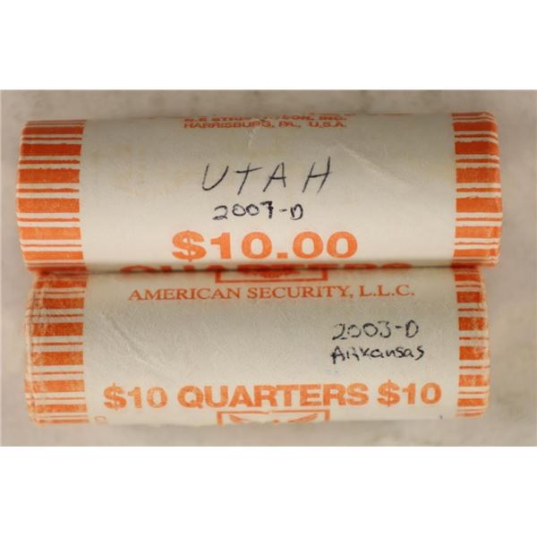 2-$10 ROLLS OF QUARTERS: 2003-D ARKANSAS & 2007-D