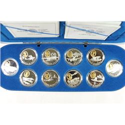 50 YEARS SET. CONTAINS: 10 STERLING SILVER PROOF COINS, EACH ENHANCED WITH A 24KT GOLD COVERED CAMEO IN NICE ORIGINAL ROYAL CANADIAN MINT PACKAGING