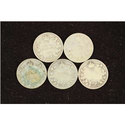 5 ASSORTED CANADA SILVER 10 CENTS DATED AND