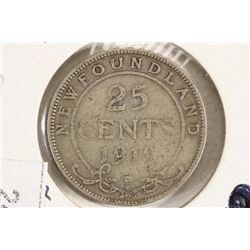 1919 NEWFOUNDLAND SILVER 25 CENTS