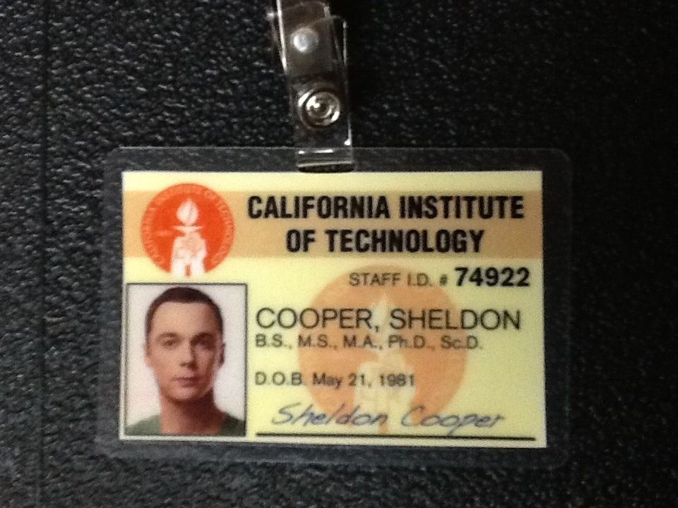This is Cooper Sheldon's CALIFORNIA INSTITUTE OF TECHNOLOGY STAFF ID from THE BIG BANG THEORY! One of the most popular shows on TV!