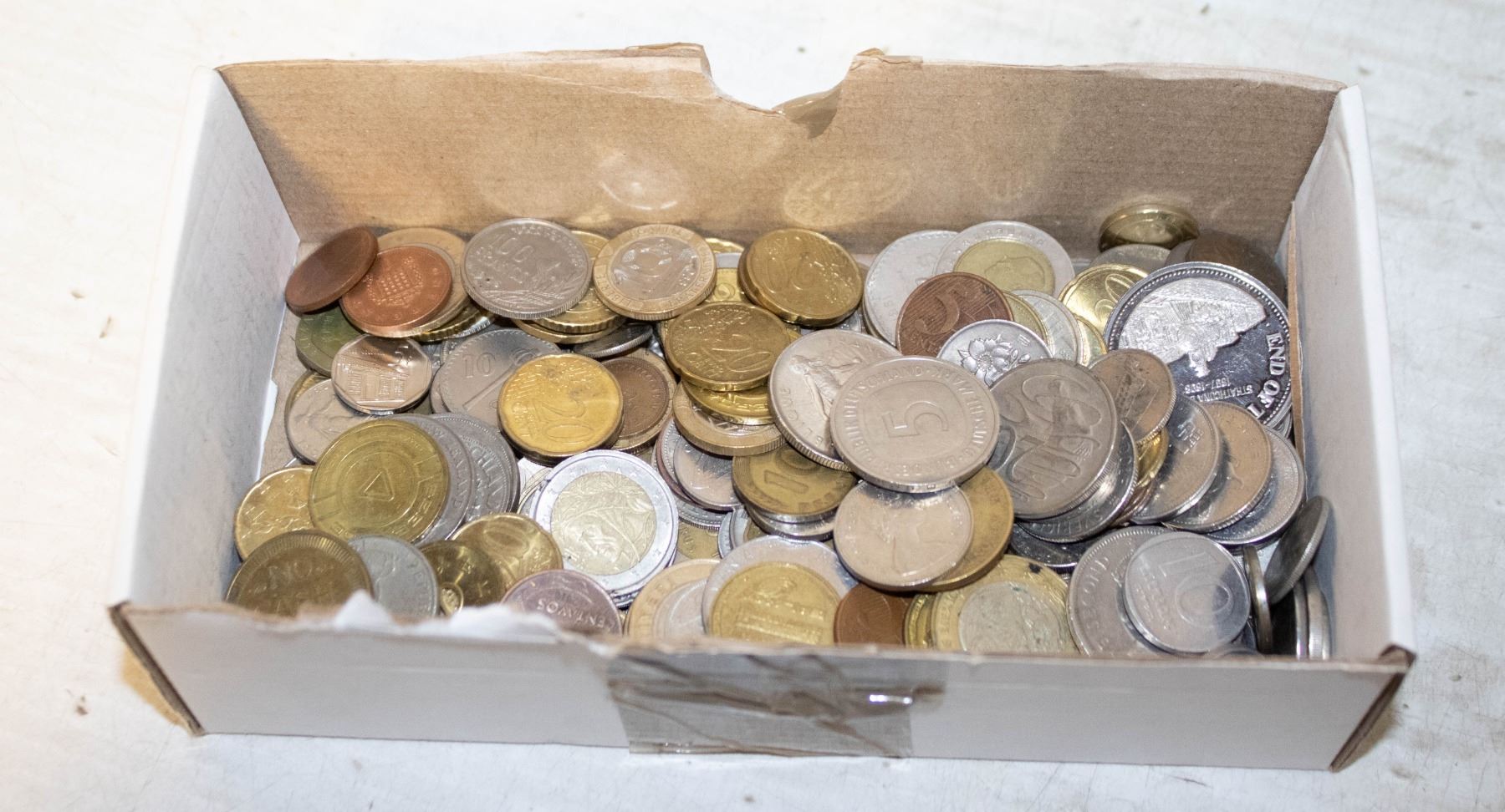 BIG BOX FULL OF COLLECTIBLE WORLD COINS